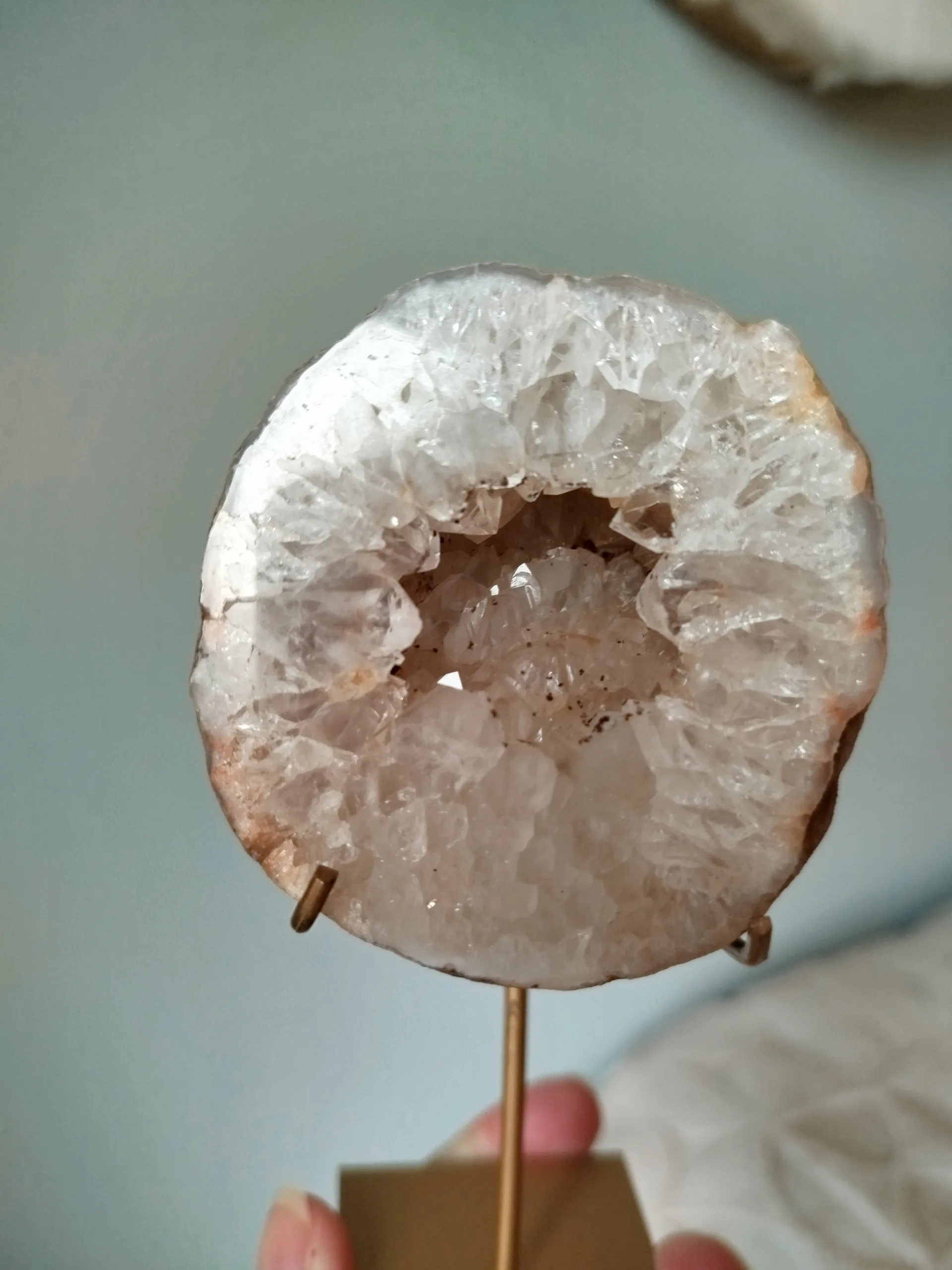 Elke Agaat is uniek. De natuurlijke patronen, kleuren en texturen maken elk stuk tot een authentiek kunstwerk van de aarde. De geode op standaard trekt direct de aandacht en geeft je interieur een natuurlijke, spirituele uitstraling.